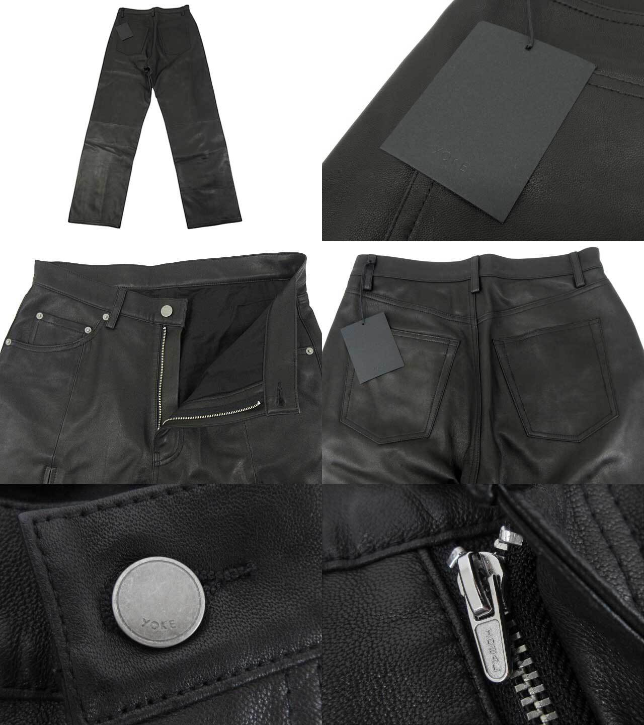 [UNUSED] YOKE “ヨーク” 24AW LEATHER FRONT ZIP 5P PANTS シープレザー フロントジップ 5ポケットパンツ ラムスキン タグ付き YK24FW0749P サイズ3 ブラック | OTAKARA FASHION