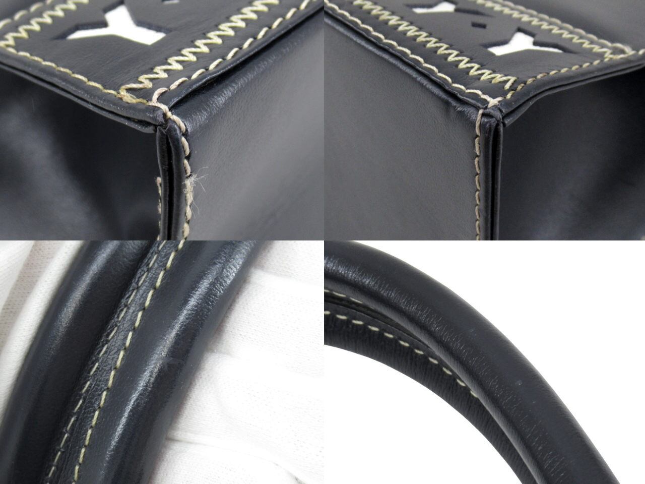 [USED] YVES SAINT LAURENT “イヴサンローラン” 2WAYセミショルダー トート ハンドバッグ 肩掛け Yロゴ カットアウト ヴィンテージ オールド ダークネイビー系