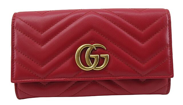 [USED] GUCCI “グッチ” GGマーモント シェブロン キルティング レザー ダブルG コンチネンタルウォレット ロングウォレット 長財布 443436 DTD1T 6433 ハイビスカスレッド