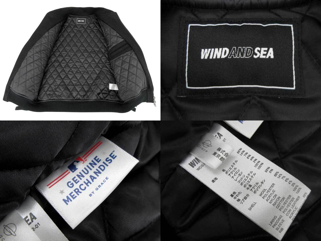 [USED] WIND AND SEA×MLB “ウィンダンシー×MLB” 23SS SAN DIEGO PADRES VARSITY JACKET サンディエゴ・パドレス バーシティジャケット ベースボール スタジアムジャケット 袖レザー スタジャン アワード WDS-C-MLBP-23-AP-Q2-01 サイズM ブラック