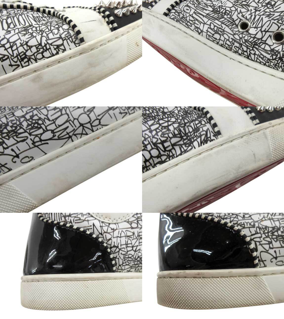 [USED] Christian Louboutin “クリスチャンルブタン” LOU SPIKES ORLATO FLAT スタッズ スパイク ハイカットスニーカー メンズシューズ 靴 1190397 40 1/2 (25.5cm相当) ホワイト×ブラック | OTAKARA FASHION