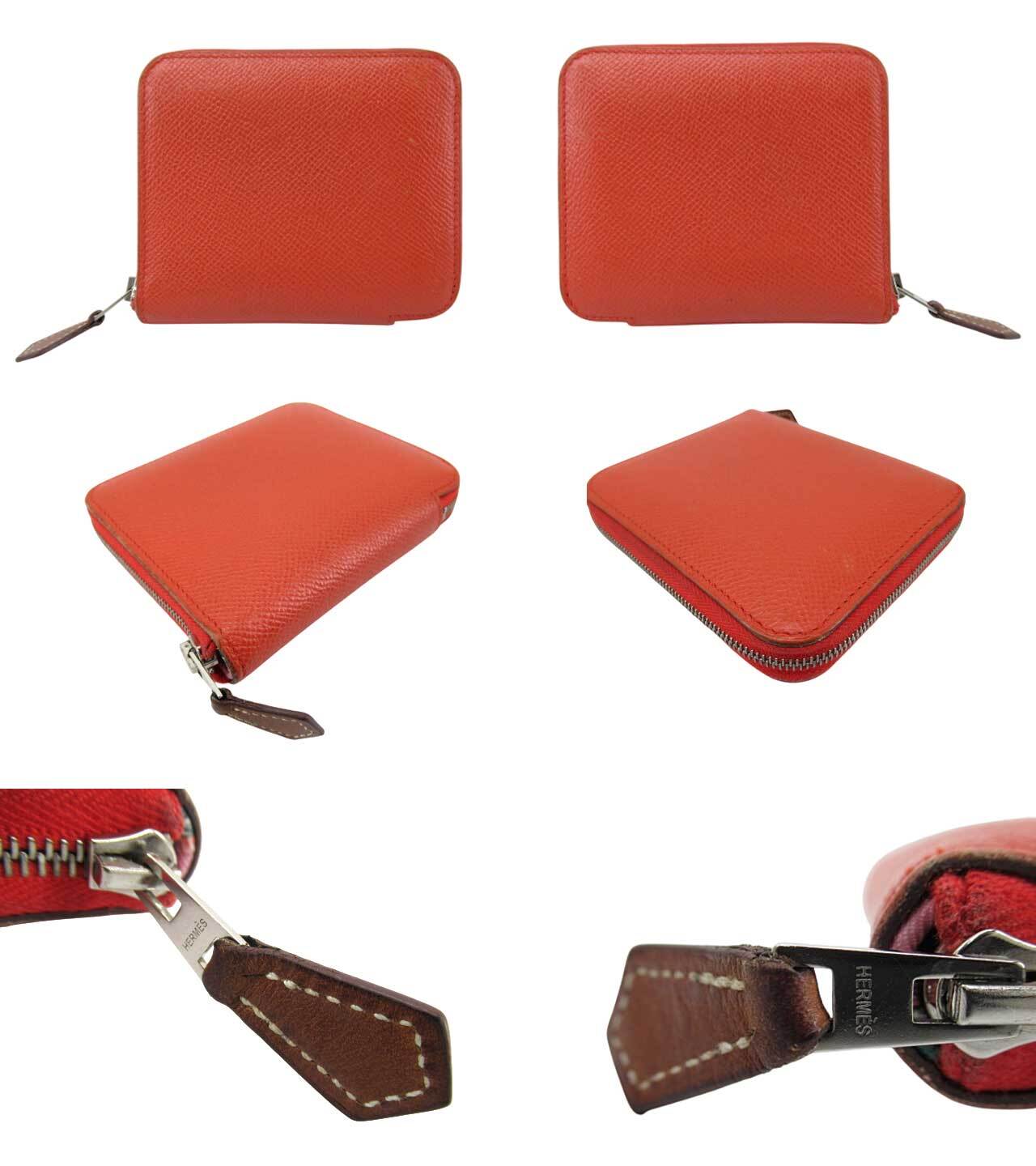 [USED] HERMES “エルメス” アザップ シルクイン コンパクト ラウンドファスナー ショートウォレット 財布 コインケース 小銭入れ カードケース 名刺入れ C刻印 シルバー金具 オレンジ | OTAKARA FASHION