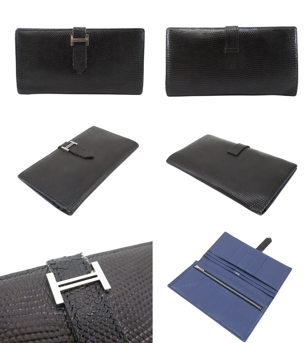 [USED] HERMES “エルメス” ベアン クラシック リザード・ニロティカス ロングウォレット 二つ折り長財布 □L刻印 シルバー金具 ブラック