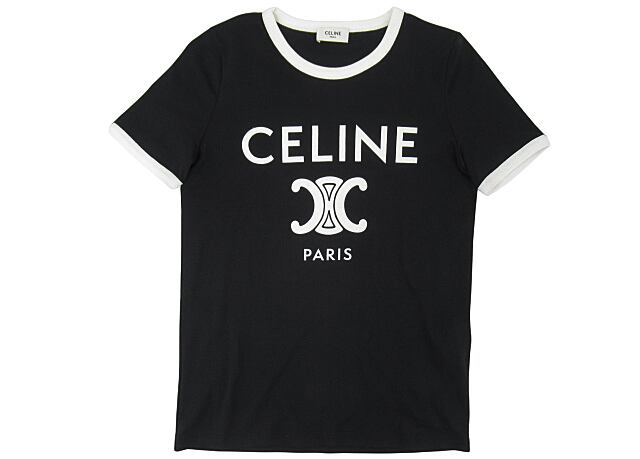 [USED] CELINE “セリーヌ” CELINE PARIS Tシャツ コットンジャージー トリオンフ ロゴプリント クラシックフィット 半袖 2X872671Q.38AW サイズXS ブラック×ホワイト | OTAKARA FASHION