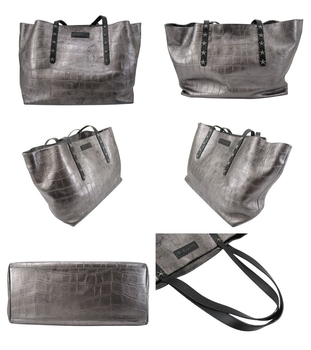 [USED] JIMMY CHOO “ジミー チュウ” PIMLICO ピムリコ クロコエンボス メタリックレザー セミショルダー トート ハンドバッグ ガンメタル×ブラック | OTAKARA FASHION