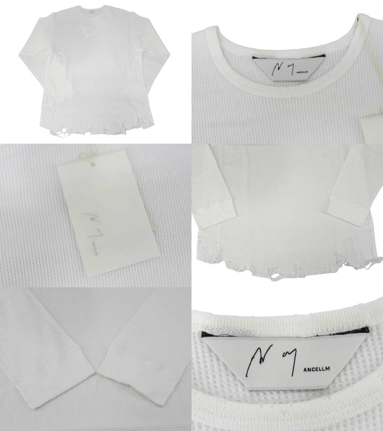 [UNUSED] ANCELLM “アンセルム”25AW DAMAGE WAFFLE CREW LS T-SHIRT ダメージ ワッフル クルー ロングスリーブ Tシャツ サーマル 長袖 タグ付き ANC-CT134 サイズ1 ホワイト | OTAKARA FASHION