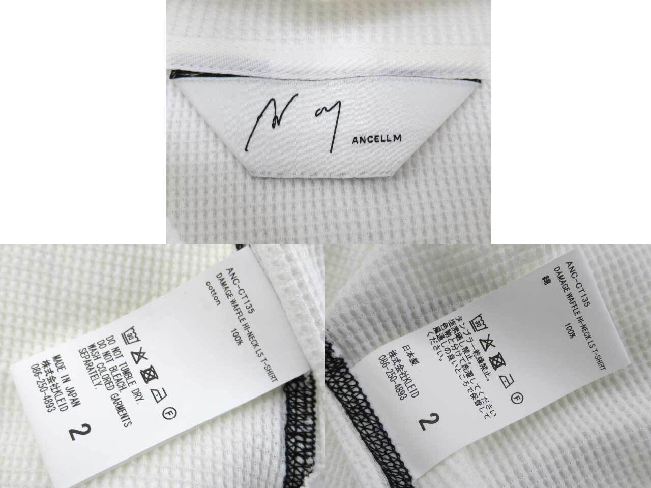 [UNUSED] ANCELLM “アンセルム” 25AW DAMAGE WAFFLE HI-NECK LS T-SHIRT ダメージ ワッフル ハイネック ロングスリーブ Tシャツ サーマル 長袖 タグ付き ANC-CT135 サイズ2 ホワイト | OTAKARA FASHION