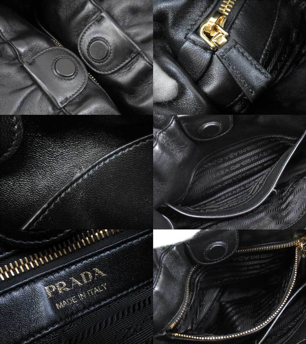 [USED] PRADA “プラダ” ナッパレザー セミショルダー トート ハンドバッグ 肩掛け ドローストリング 巾着 トライアングルロゴ フリンジ 1BG541 ブラック