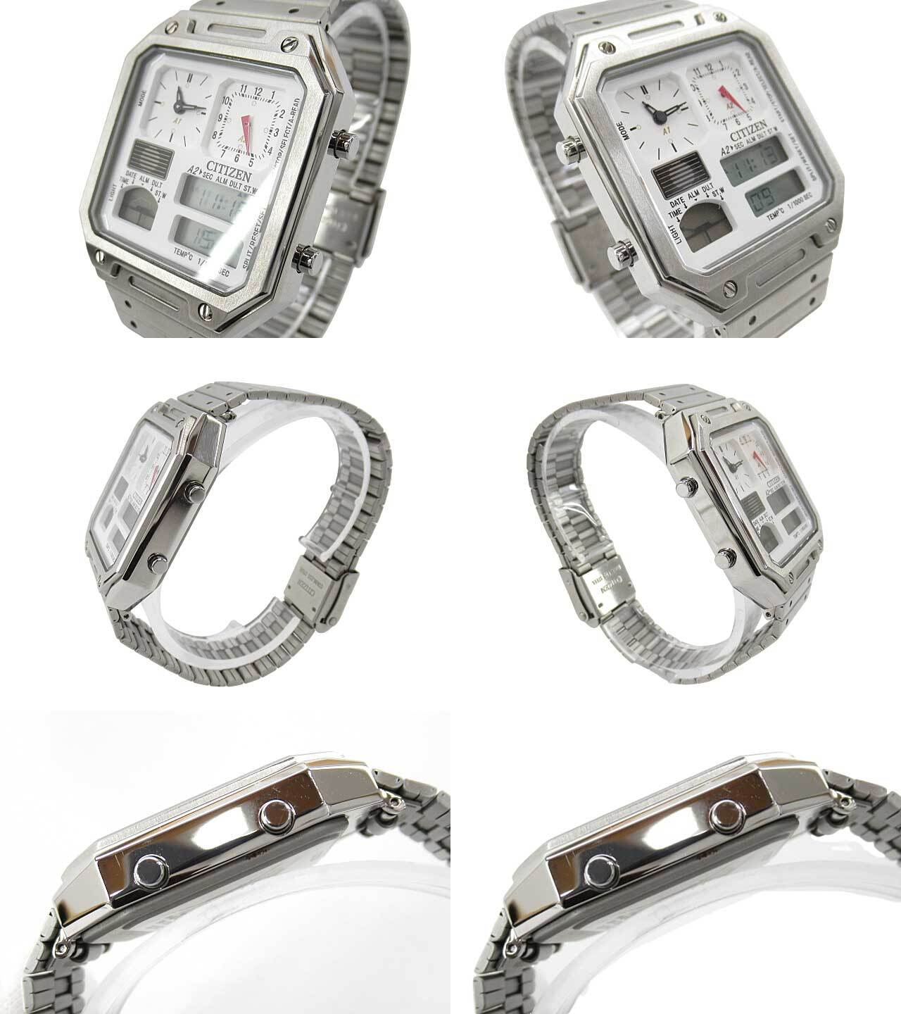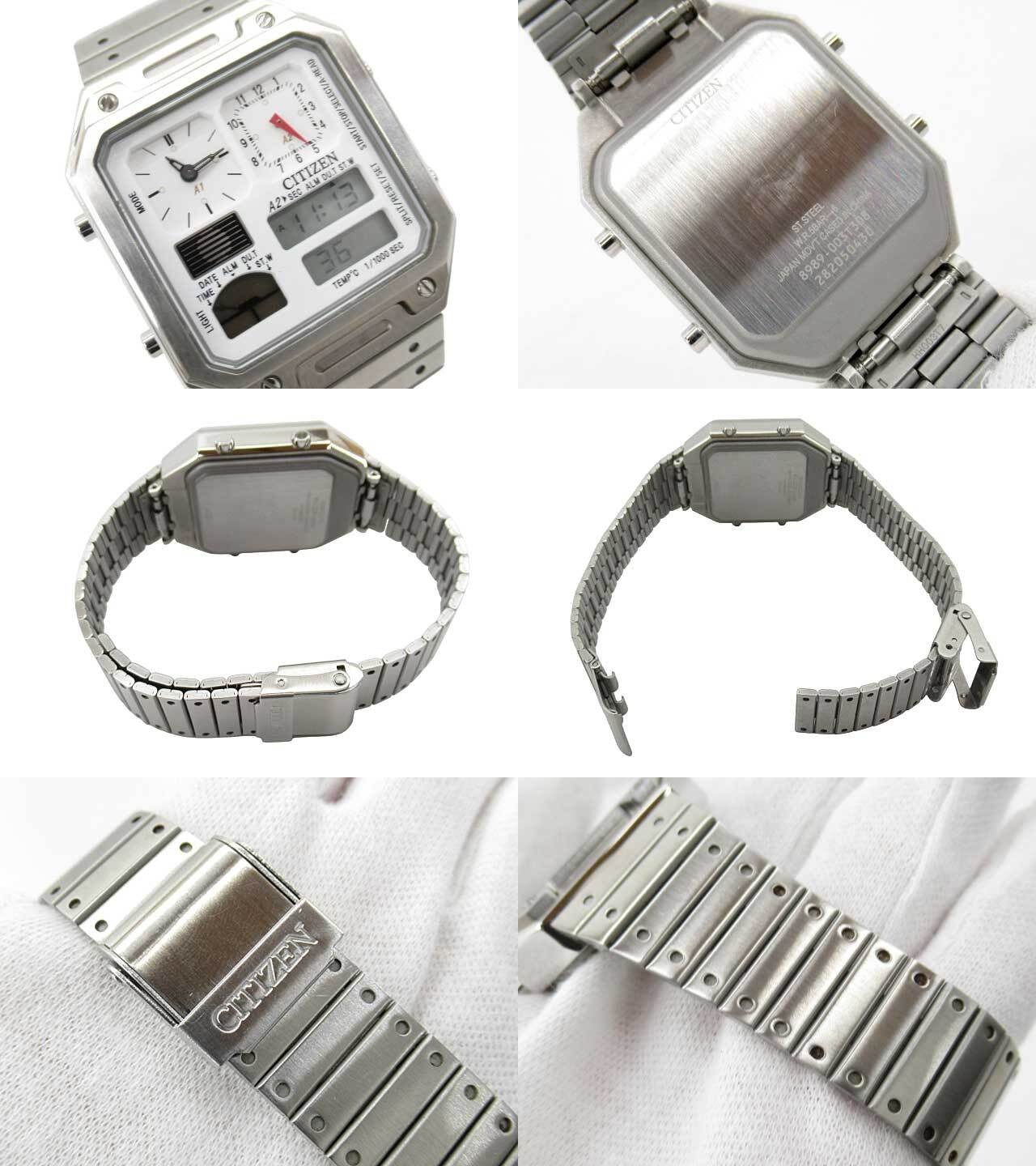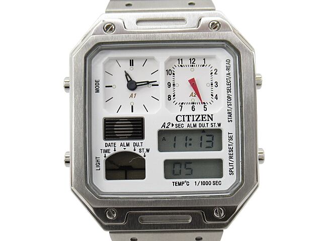 [USED] CITIZEN “シチズン” RECORD LABEL THERMO SENSOR レコードレーベル サーモセンサー コンビネーションクォーツ アナデジウォッチ 腕時計 JG2120-65A 8989-003T308 シルバー ホワイト | OTAKARA FASHION