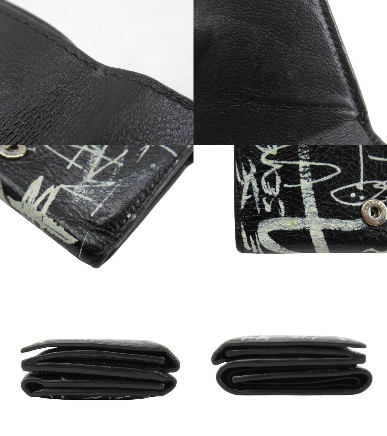 [USED] BALENCIAGA “バレンシアガ” キャッシュ ミニウォレット グラフィティ コンパクト 三つ折り財布 594312 210LH 1090 ブラック