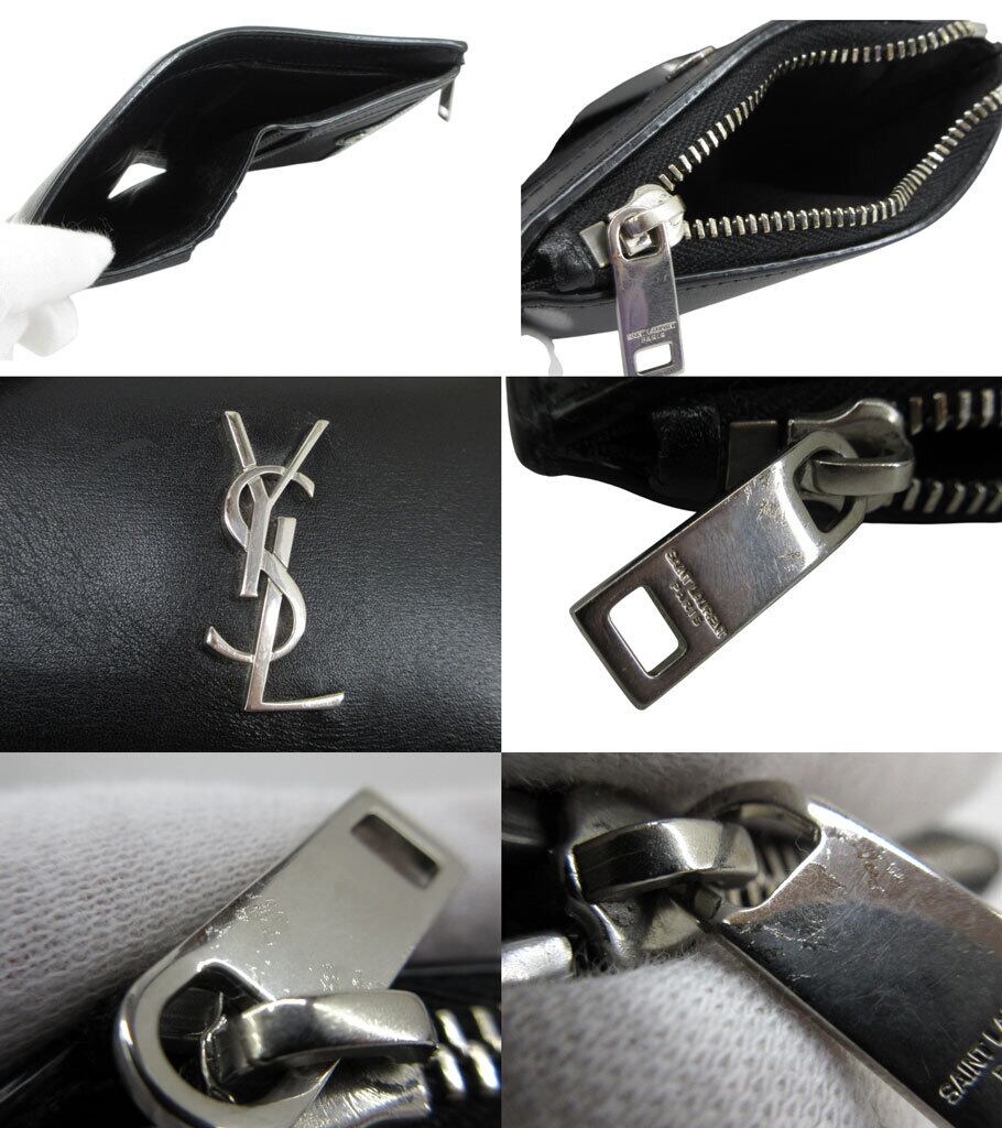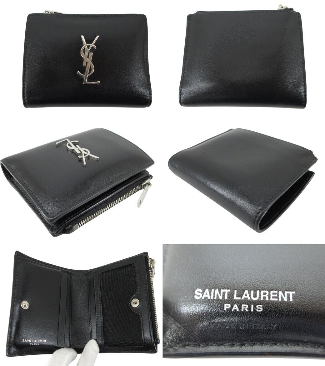 [USED] SAINT LAURENT “サンローラン” カサンドラ YSLロゴ ショートウォレット コンパクト 二つ折り財布 シルバー金具 575726 0SX0E 1000 ブラック | OTAKARA FASHION