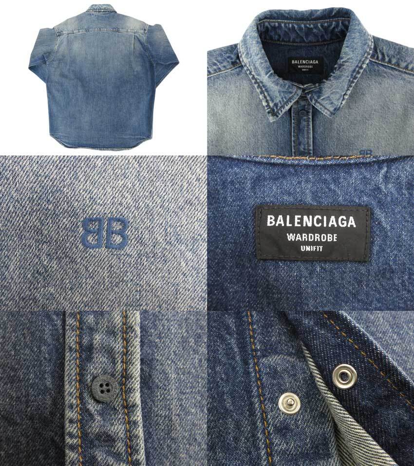 [USED] BALENCIAGA “バレンシアガ” ダメージ加工 BBロゴ刺繍 オーバーサイズ デニムシャツ 長袖 スナップボタン 678363 サイズXS インディゴ | OTAKARA FASHION
