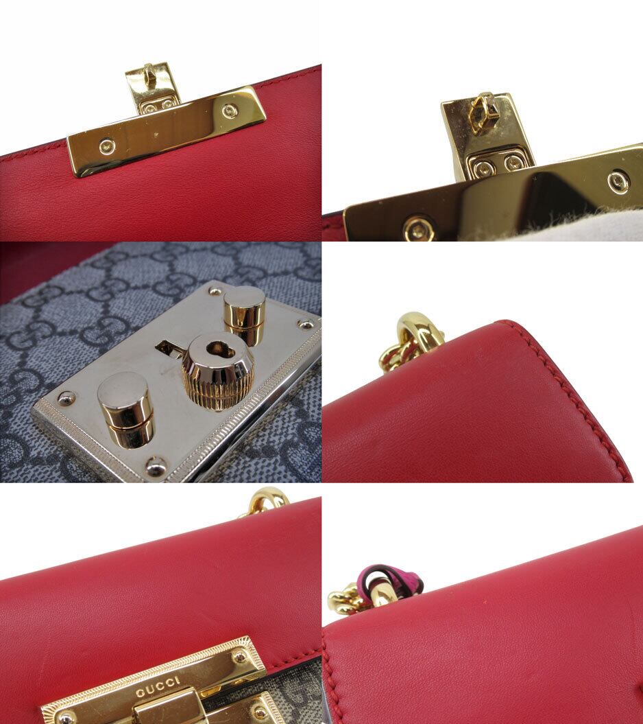 [USED] GUCCI “グッチ” GGスプリーム パドロック スモール チェーンショルダーバッグ クロスボディ 斜め掛け 肩掛け 409487 ベージュ系 レッド ピンク系