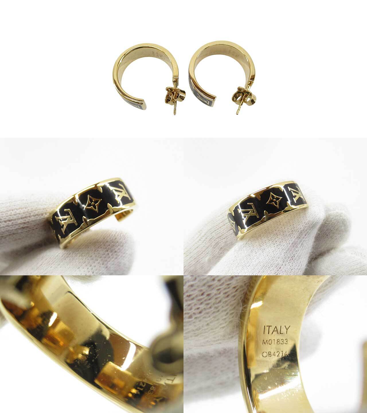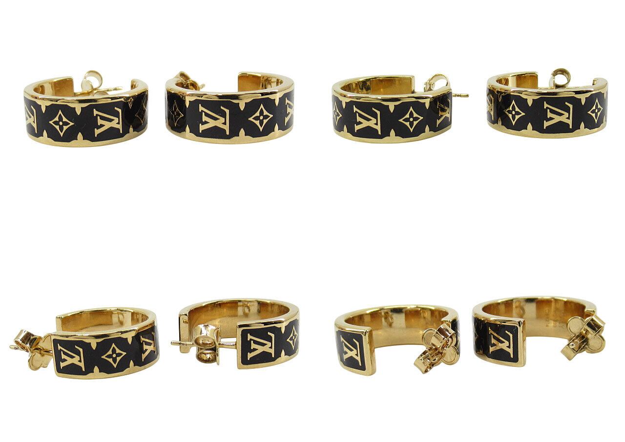 [USED] LOUIS VUITTON “ルイヴィトン” ピアス・ナノ グラム エナメル フープ アクセサリー M01833 ゴールド×ブラック