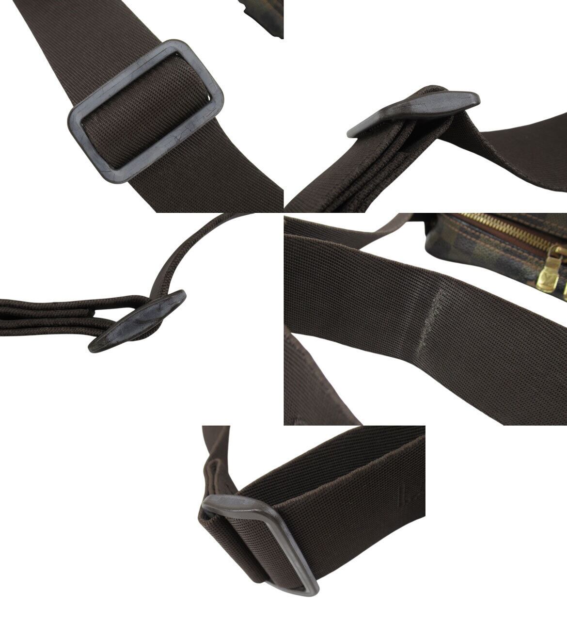 表地の上部に破れ、剥がれ、スレ、内側に汚れやシミ、スレ、金具部分にスレや塗装剥がれ等、全体的に使用感があります。