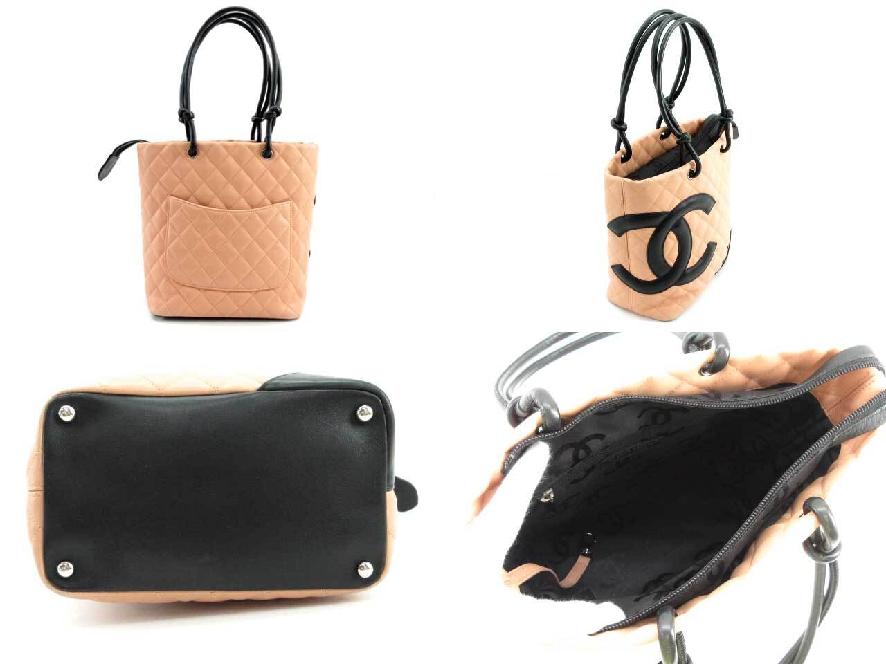 [USED] CHANEL“シャネル” カンボンライン トートバッグ ハンドバッグ カーフスキン ベージュ×ブラック