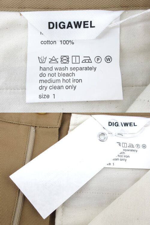 [UNUSED] DIGAWEL “ディガウェル” 21SS 2Tuck Tapered Pants 2タック テーパードパンツ チノ トラウザー タグ付き DWUA024 サイズ1 ベージュ | OTAKARA FASHION