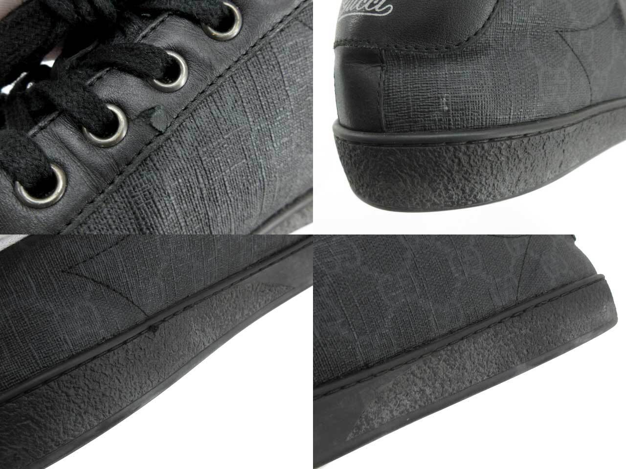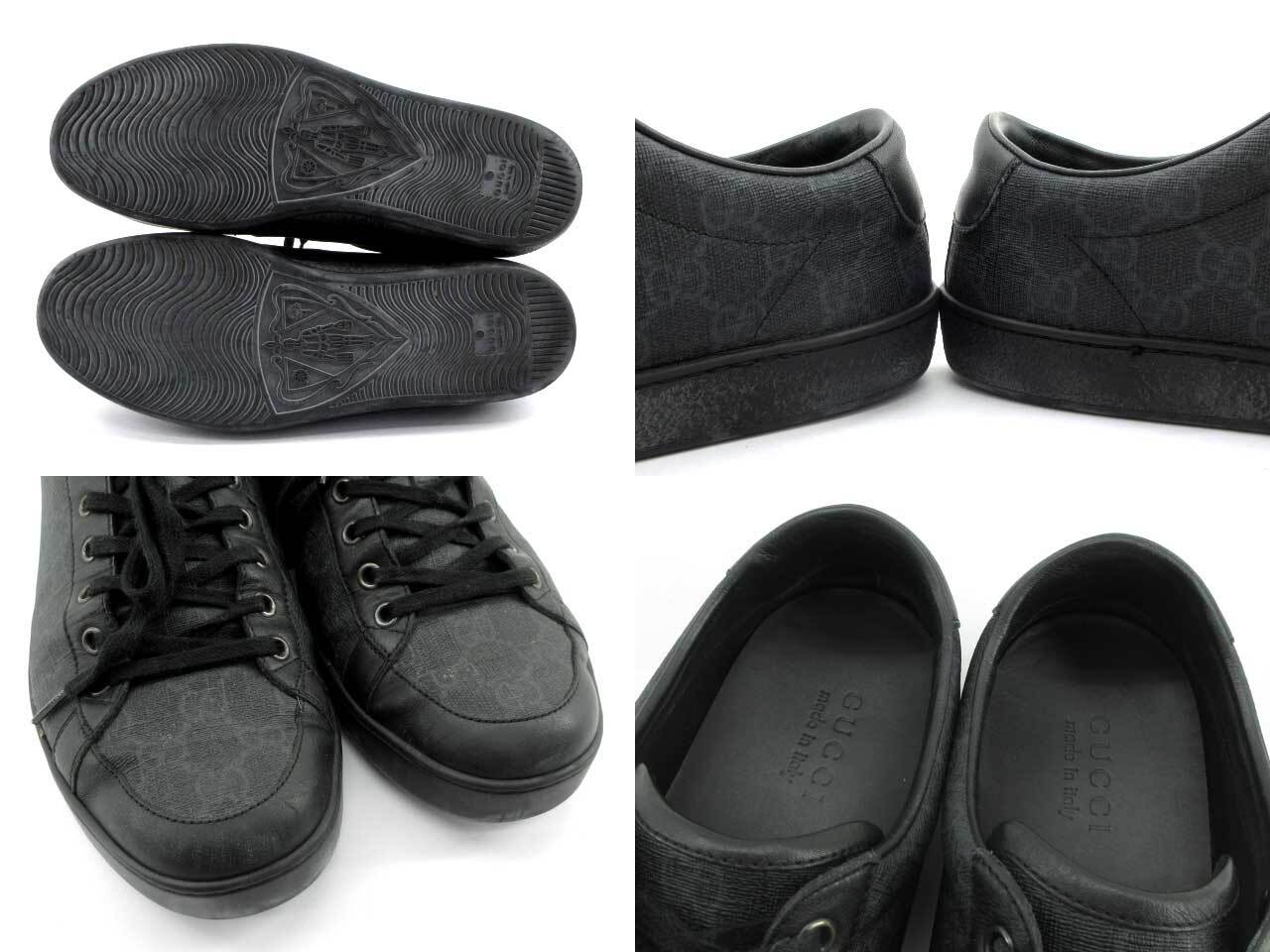 GG柄を全面にあしらったシンプルなデザイン。スレ・履きジワ・汚れ等、多少の使用感ありますが、まだまだ着用いただけるコンディションです。