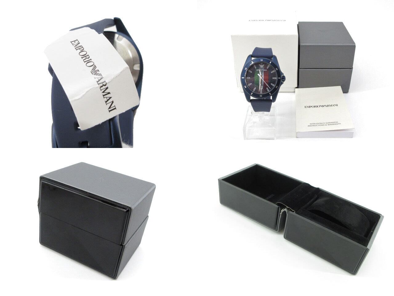 ダイアルのイタリア国旗がアクセント。エンポリオアルマーニならではのエレガンスとスポーティーさをミックスしたウォッチです。大きなダメージや汚れなど無く、状態良好・美品です。