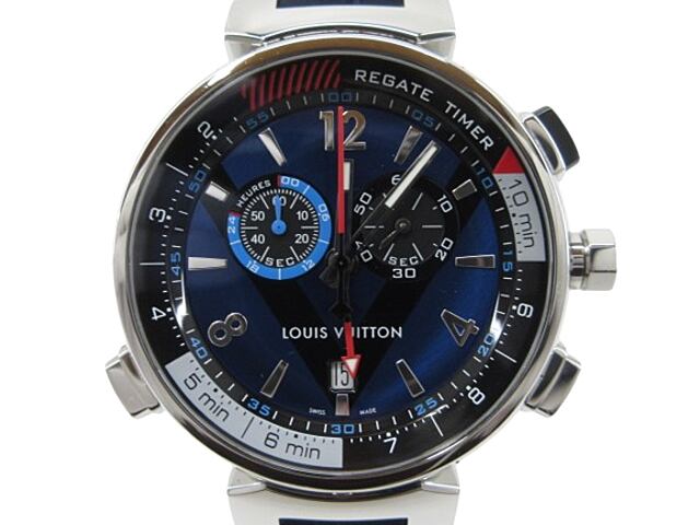 [USED] LOUIS VUITTON “ルイヴィトン” タンブール レガッタ クロノグラフ クォーツ アナログウォッチ 腕時計 Q102DZ シルバー ブルー系 ネイビー