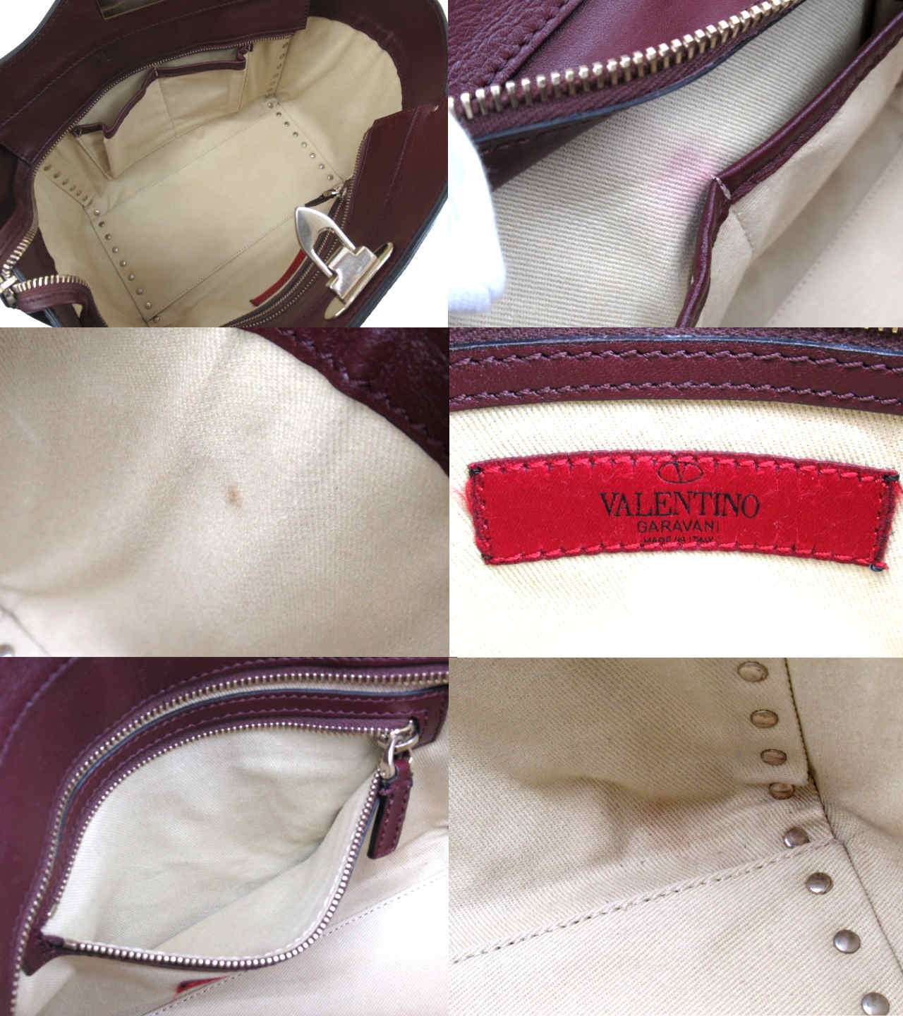 [USED] VALENTINO GARAVANI “ヴァレンティノ ガラヴァーニ” ロックスタッズ 2WAYショルダー トート ハンドバッグ クロスボディ 斜め掛け 肩掛け ボルドー | OTAKARA FASHION