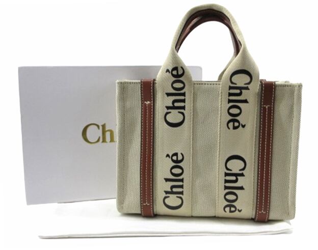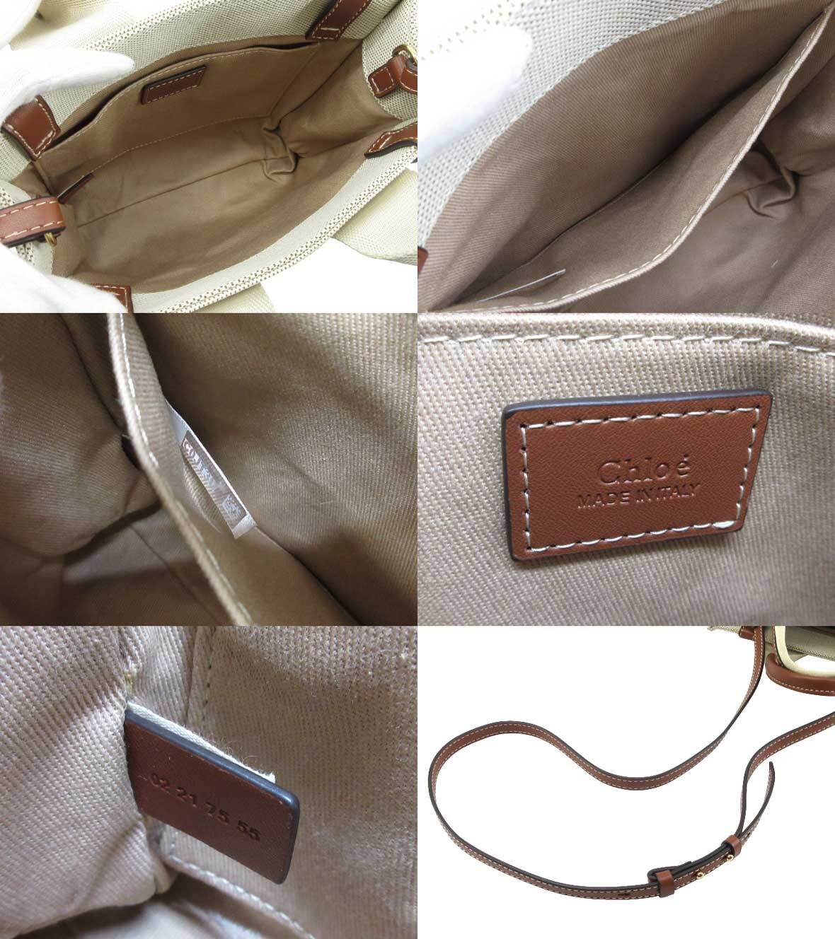[USED] Chloe “クロエ” WOODY スモールトートバッグ ウッディ 2WAYショルダー ハンドバッグ クロスボディ 斜め掛け 肩掛け CHC21US385 ホワイト×ブラウン (ベージュ系)