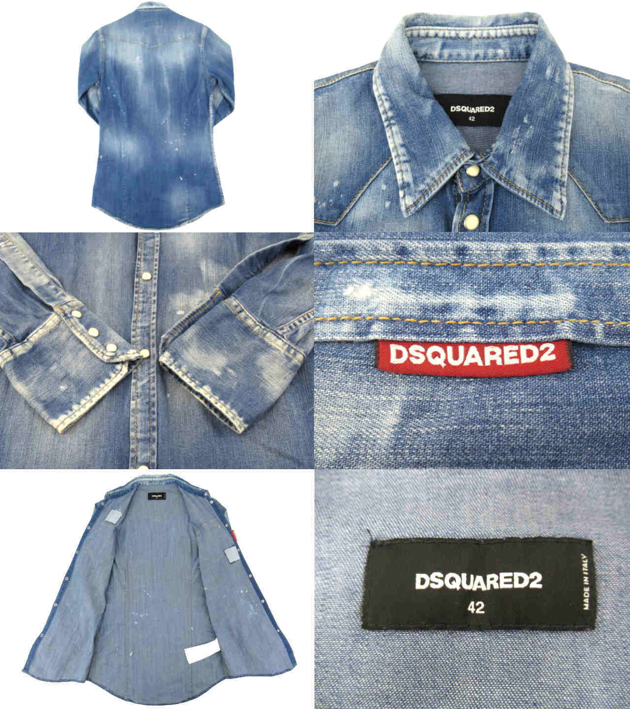 [USED] DSQUARED2 “ディースクエアード” 19AW Classic Western Fit デニムシャツ クラシックウエスタンフィット ダメージ加工 S74DM0301 サイズ42 インディゴ
