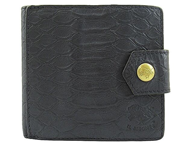 [USED] IL BISONTE “イルビゾンテ” パイソン エンボスド レザー ウォレット ショートウォレット コンパクトウォレット スナップボタン 二つ折り 型押し 54222310841 ブラック
