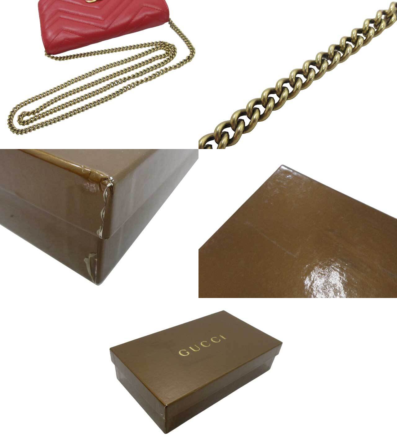 [USED] GUCCI “グッチ” GGマーモント チェーンショルダーバッグ クロスボディ 斜め掛け 肩掛け ポーチ 488426 レッド