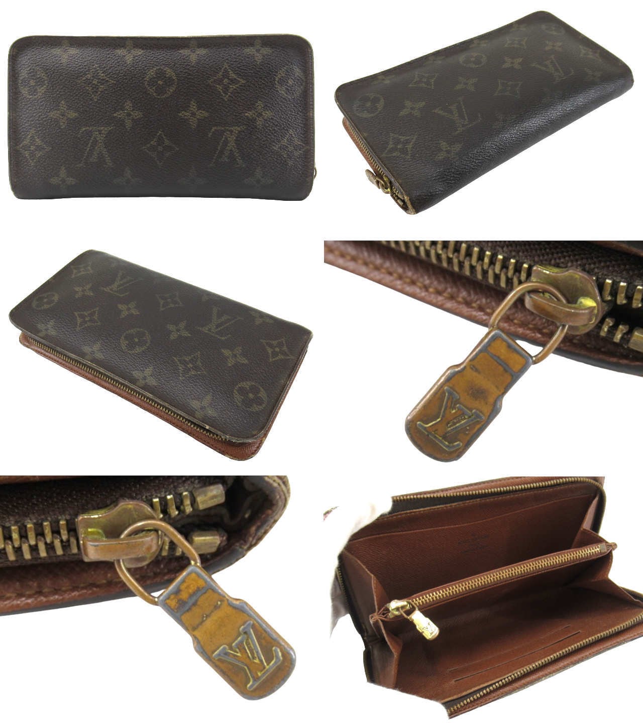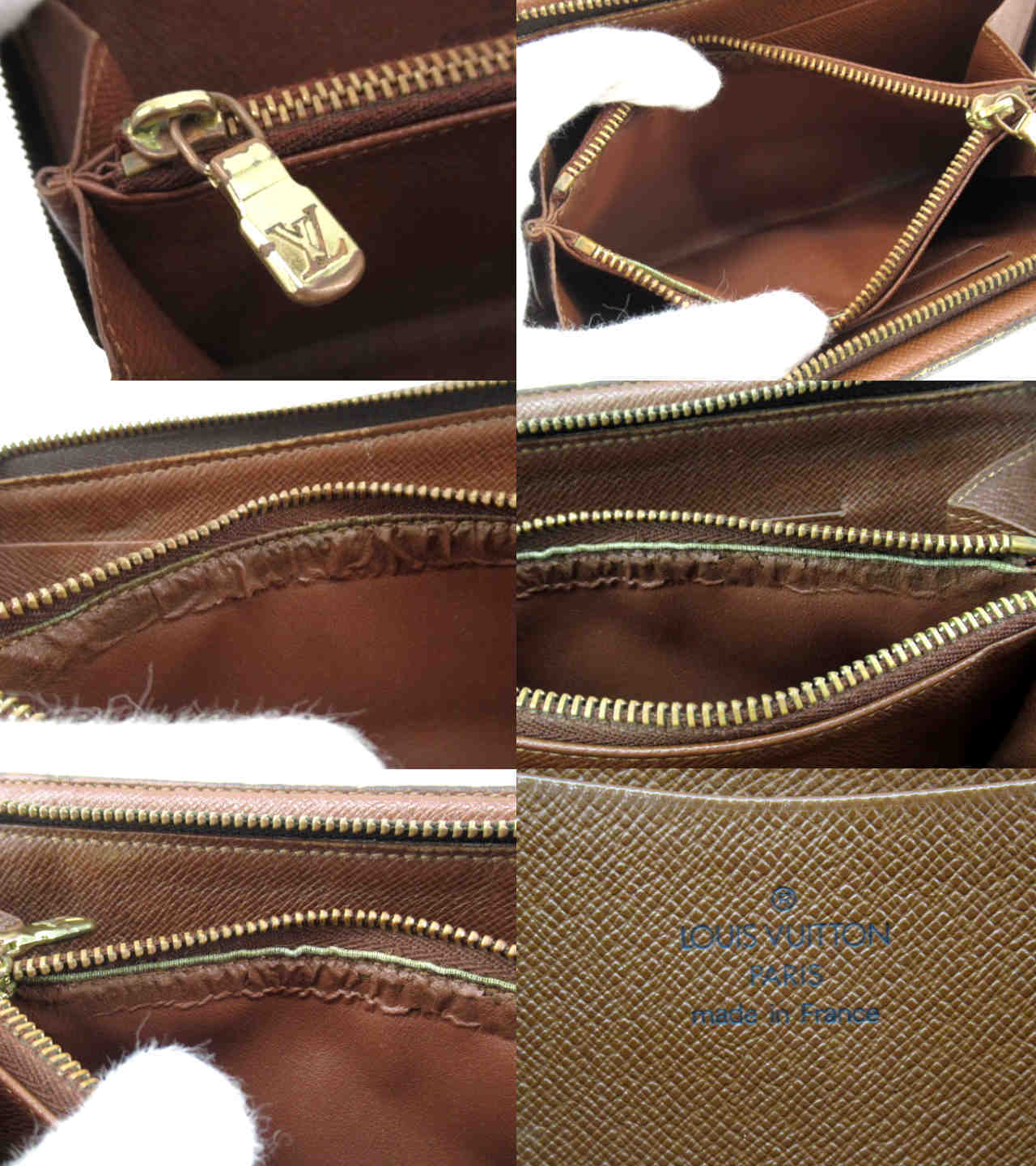 擦れ、汚れ、割れ、内側べた付き、ファスナー部分破れ、コインポケット内に劣化・剥がれ等、全体的に使用感あります。