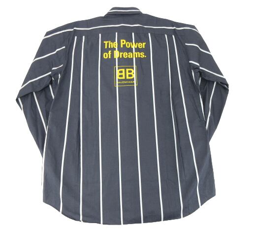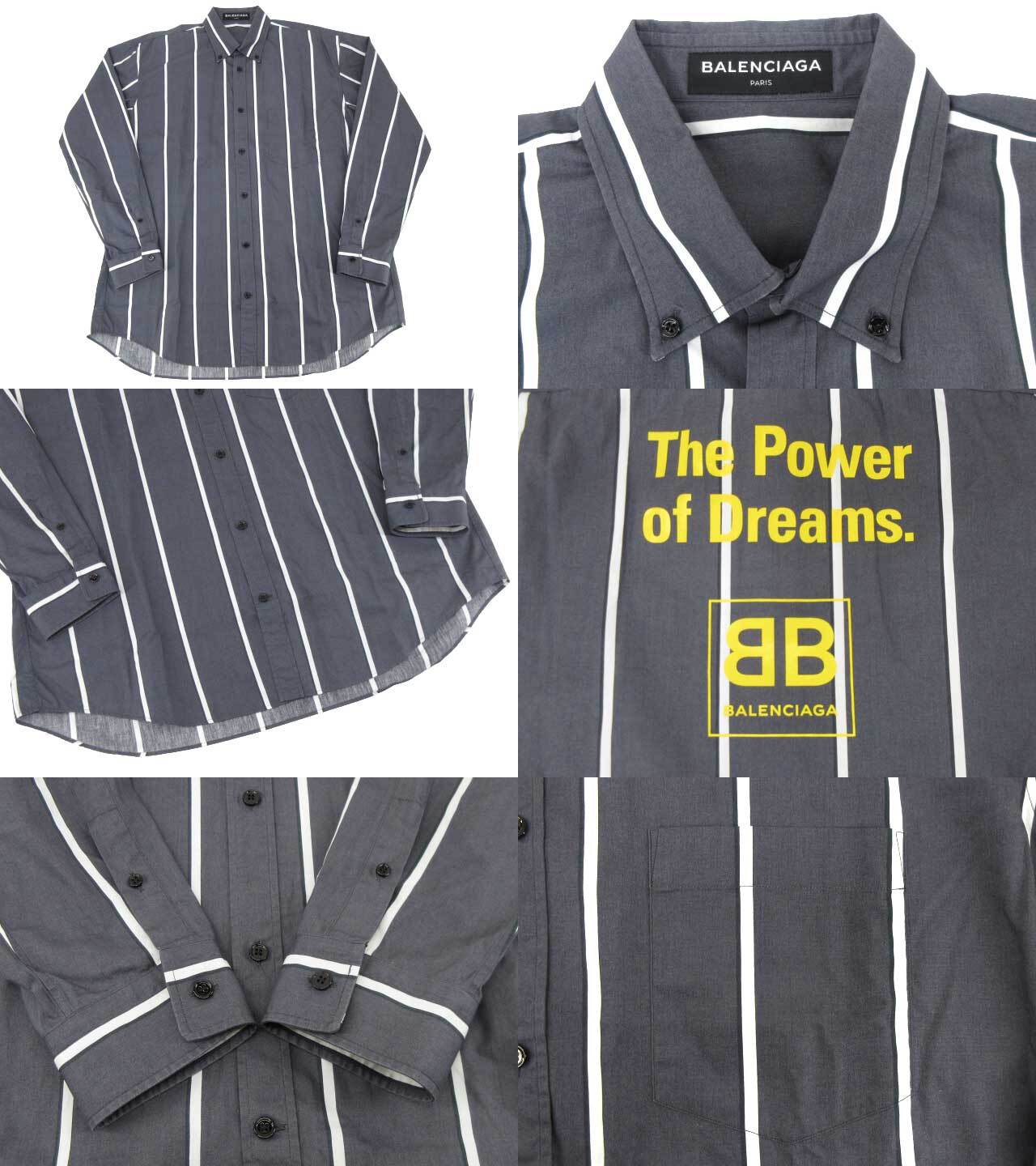[USED] BALENCIAGA “バレンシアガ” 18SS バックロゴ オーバーサイズ ボタンダウンシャツ ストライプ 長袖 508466 TYA48 サイズ39 グレー系 | OTAKARA FASHION