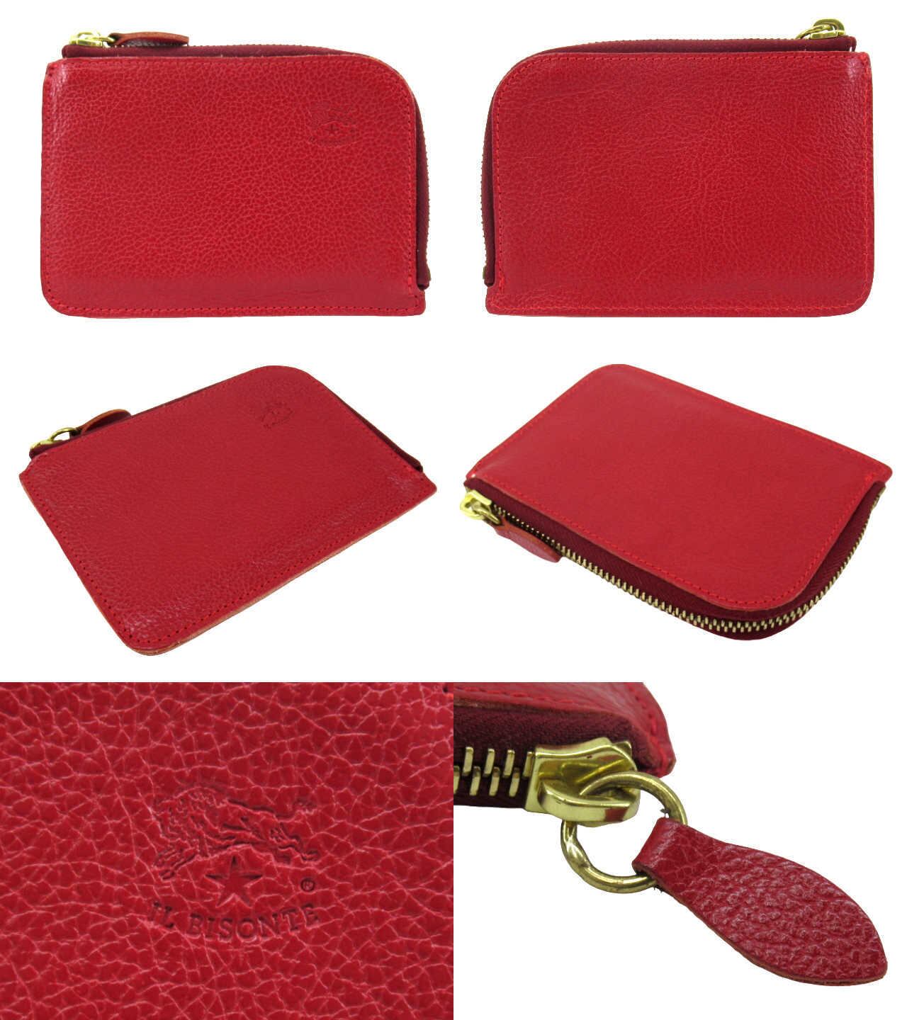 [USED] IL BISONTE “イルビゾンテ” コンパクトウォレット ショートウォレット ミディアムウォレット コインケース L字ファスナー レザー 5432404540 レッド | OTAKARA FASHION