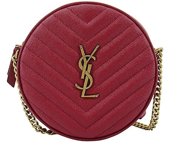 [USED] SAINT LAURENT “サンローラン” ヴィニル YSL チェーンショルダーバッグ クロスボディ 斜め掛け 肩掛け ラウンド ゴールド金具 610436 バーガンディ