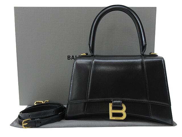 [USED] BALENCIAGA “バレンシアガ” HOURGLASS スモールバッグ シャイニーボックスカーフ 2WAYショルダー ハンドバッグ クロスボディ 斜め掛け 肩掛け 5935461QJ4M1000 ブラック