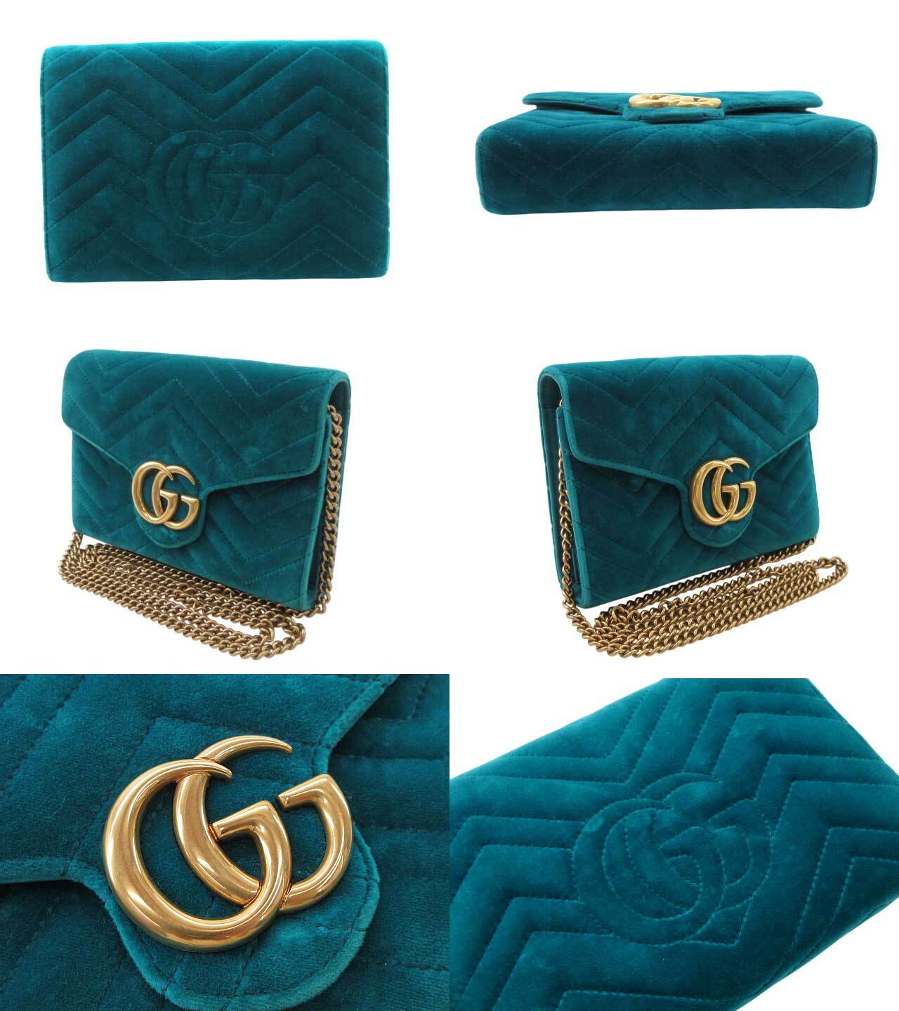 [USED] GUCCI “グッチ” GGマーモント ベロア スーパーミニバッグ チェーンショルダー クロスボディ 斜め掛け 肩掛け ウォレット 財布 ベルベット ゴールド金具 474575 エメラルドグリーン系