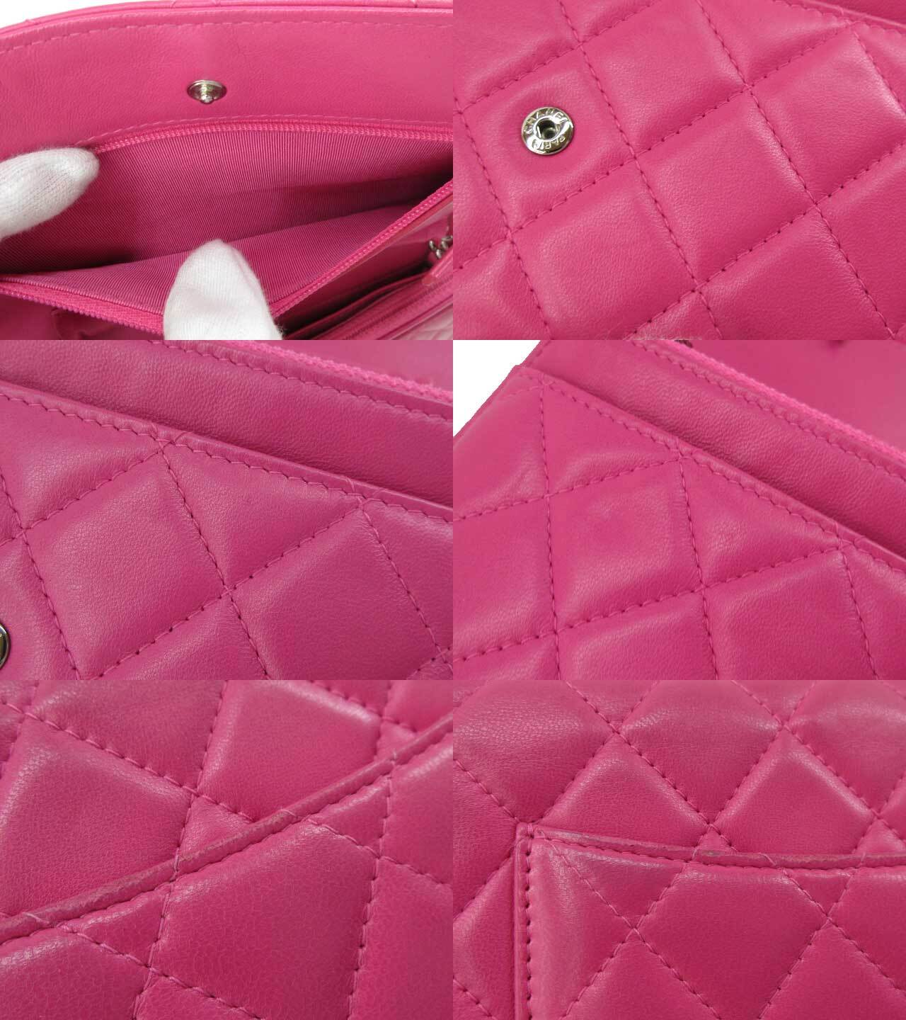 [USED] CHANEL “シャネル” マトラッセ ラムスキン チェーンショルダー フラップウォレット ロングウォレット 長財布 ショルダーバッグ クロスボディ 斜め掛け 肩掛け シルバー金具 A33814 ピンク