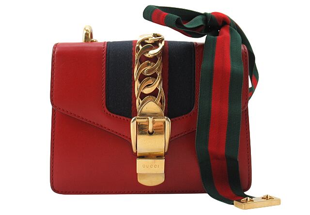 [USED] GUCCI “グッチ” シルヴィ チェーンショルダーバッグ クロスボディ 斜め掛け 肩掛け ウェブストライプ 431666 レッド