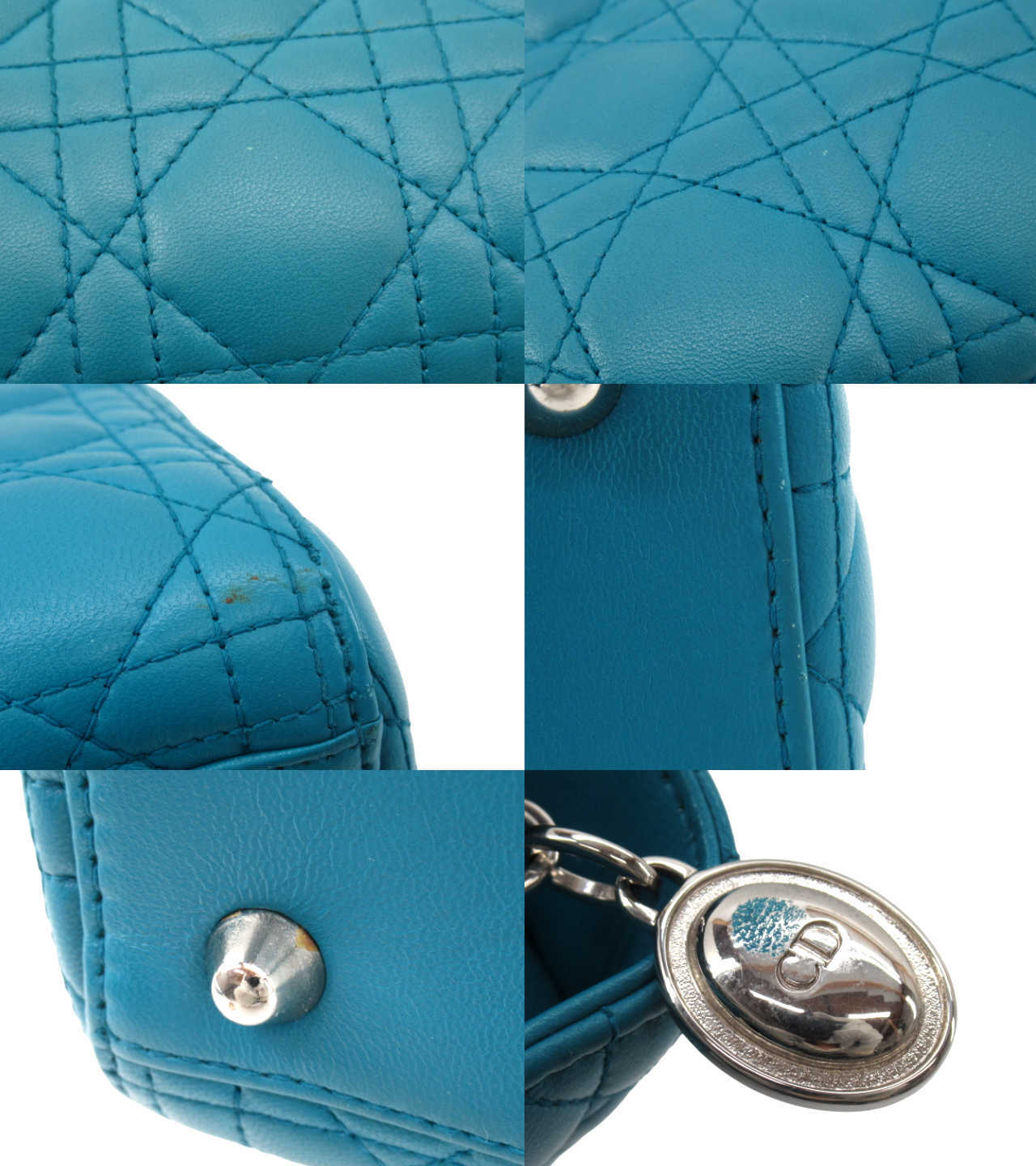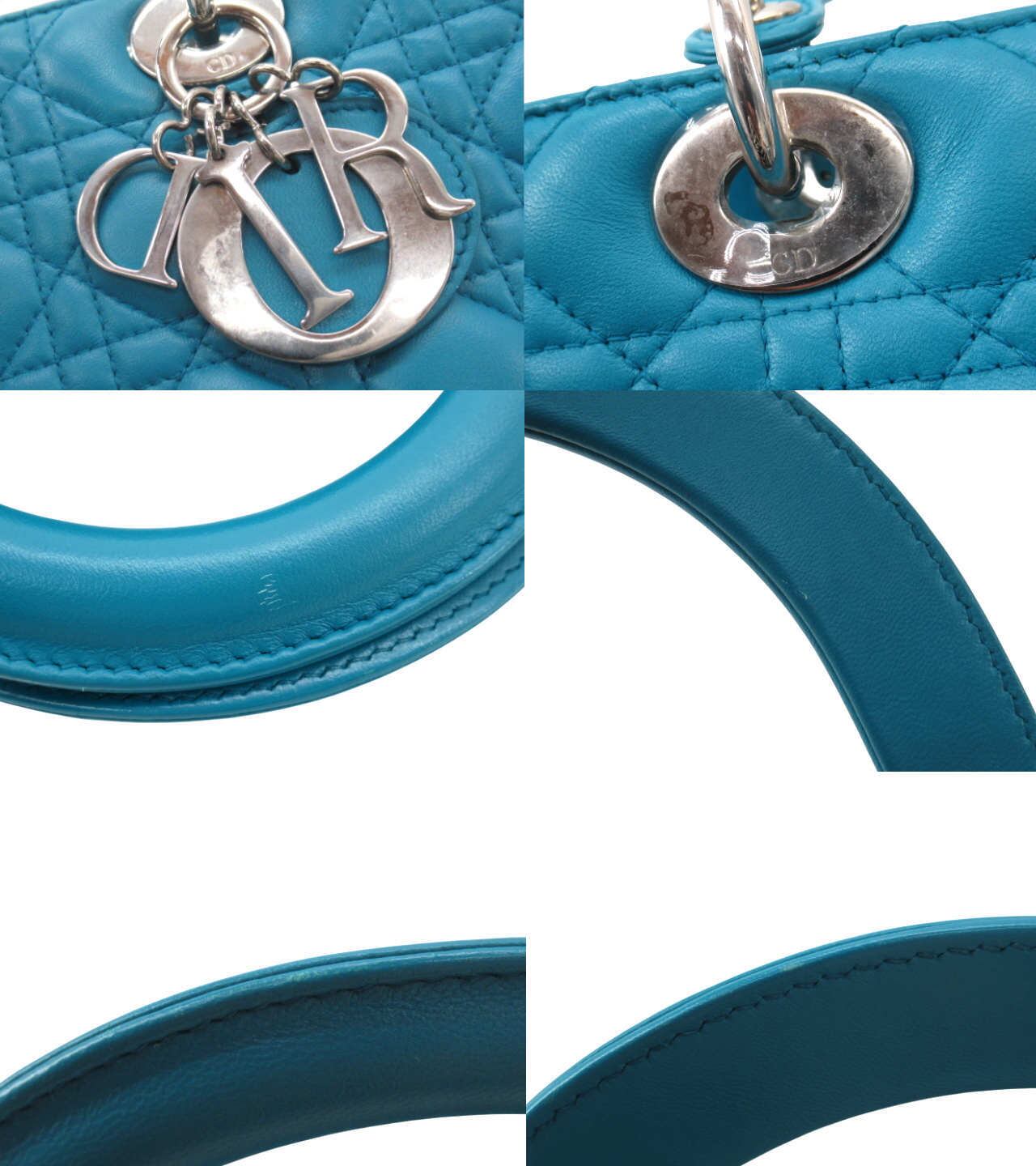 [USED] Christian Dior “クリスチャン ディオール” レディディオール ラージ カナージュ ラムスキン 2WAYショルダー トート ハンドバッグ 肩掛け シルバー金具 18-MA-0143 ターコイズ